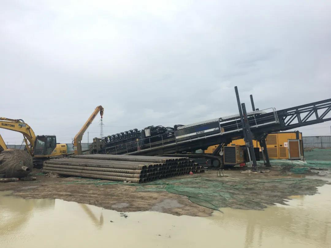 全球最大吨位水平定向钻机徐工XZ13600在中俄东线天然气长输管道项目曹妃甸段施工