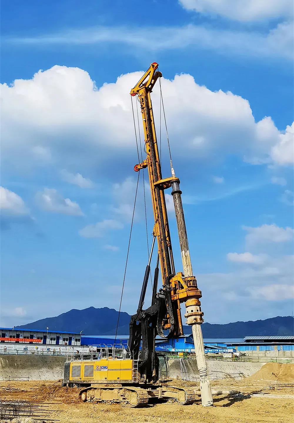 为满足工程桩基的稳固性,保证成桩质量,施工方经过严苛的对比、筛选,选择了十几台徐工XR360E和XR400E系列旋挖钻机进场施工。