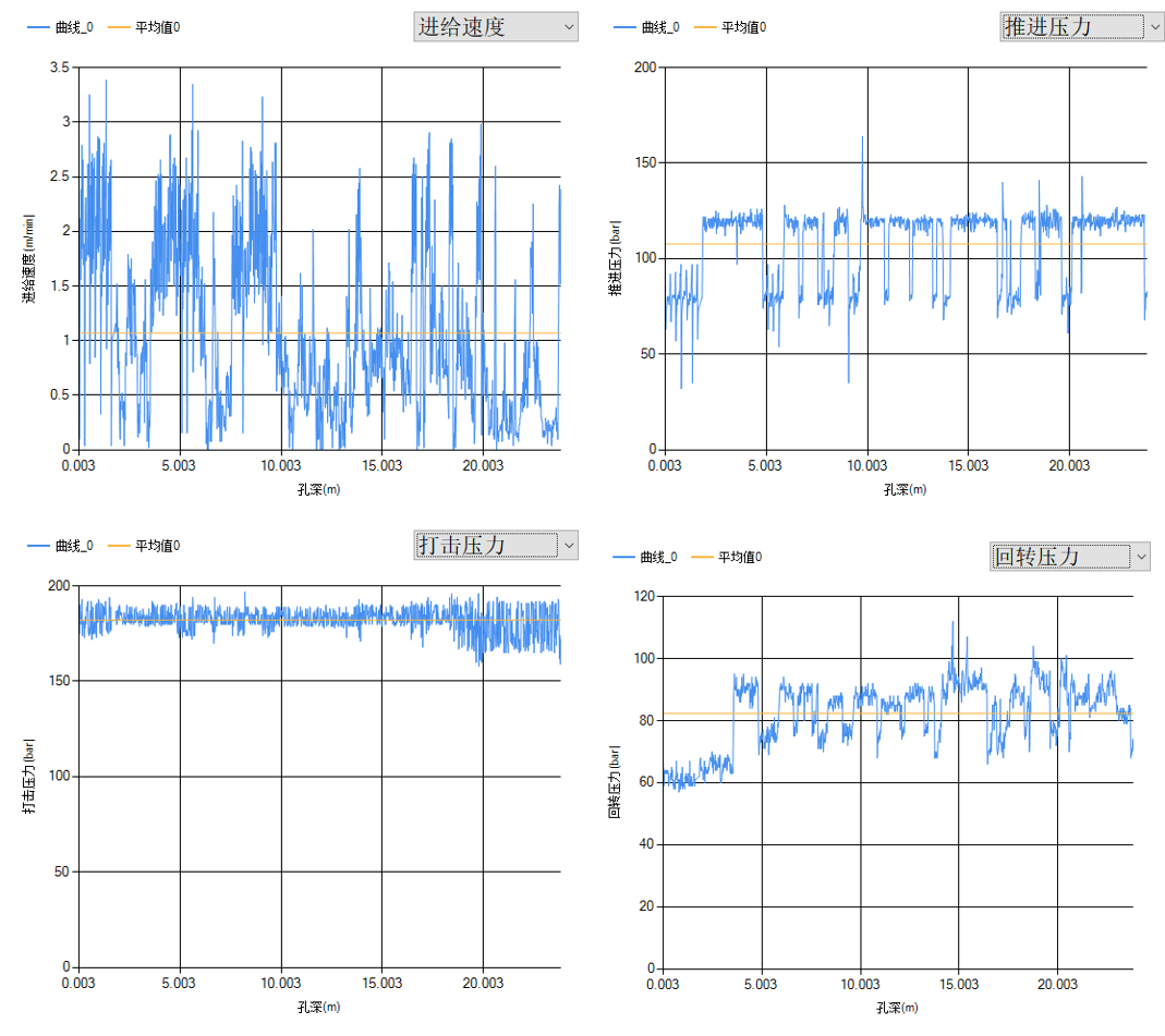 (1)∅76毫米深30米超前探孔用时1小时,施工完成后采用U盘或网线方式导出随钻测量数据,利用MWD分析软件生成地质云图和日志参数曲线,预判前方地质信息。