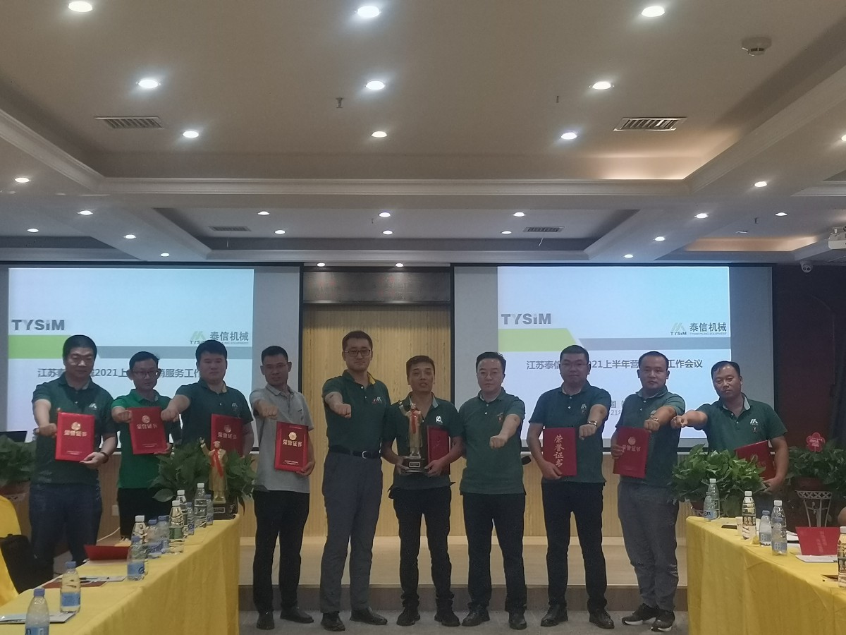 董事长辛鹏,董事 、营销总经理肖华安为上半年表现突出的优秀工作者颁奖。随后,售后服务部部长段毅作为获奖人代表讲话。