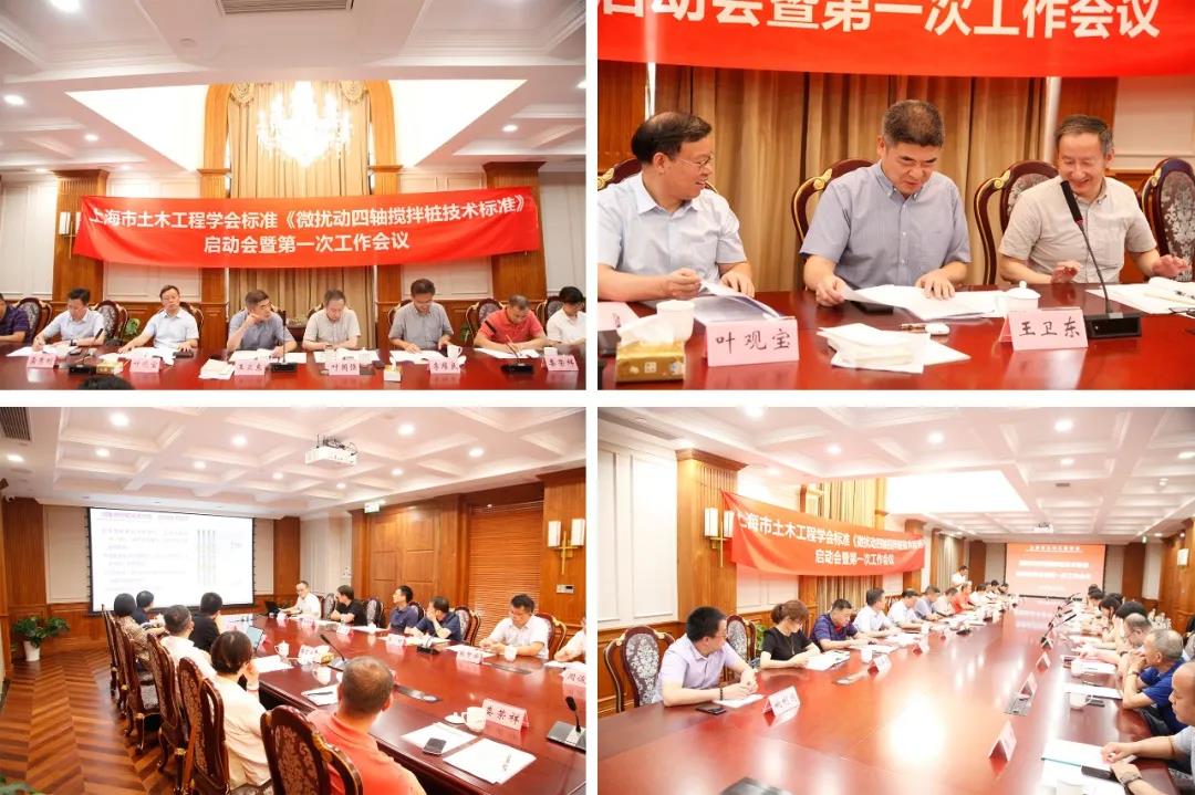 8月12日下午,由华东建筑设计研究院有限公司、上海渊丰地下工程技术有限公司、上海市基础工程集团有限公司主编的《微扰动四轴搅拌桩技术标准》(以下简称《标准》)启动会暨第一次工作会议在上海市闵行区浦秀公馆顺利召开,来自上海工程机械厂有限公司、上海建筑施工行业等13家参编单位出席本次会议。