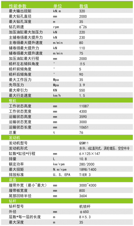 本期分享的工程机械为KR300ES低净空全液压旋挖钻机,该机械精选动力强劲的原装美国康明斯发动机,结合泰信核心技术的电控系统、液压系统、泰信自制旋挖钻机专用底盘,将动力系统与液压系统完美匹配,并采用目前国内最先进的负荷传感、负载敏感和比例控制液压系统,使液压系统效率更高、更节能,其动态及静态稳定性设计,在充分发挥机械工作能力的同时,充分保证施工安全。