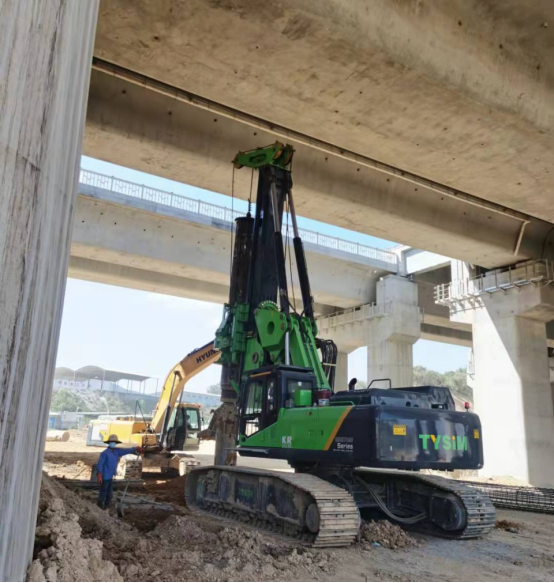 随着中国城镇化的不断深入发展,地铁施工线路不断增加,高架桥也是在城市立体轨道交通中发挥越来越重要的作用,泰信机械应着客户的不同需求,针对在建筑物与大型隧道内、桥梁与高压线下等环境中施工的工况,制定了针对性较强的技术方案,自主研发推出了特殊机型KR300ES低净空旋挖钻机。