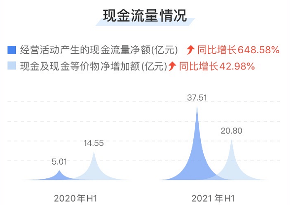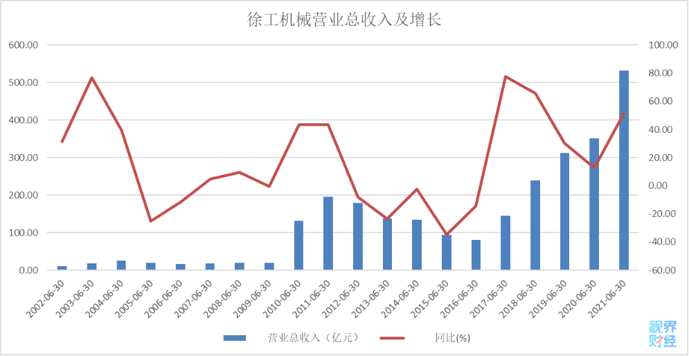 报告显示,2021年上半年,徐工机械实现营业收入532.34亿元,比上年同期增长 51.8%;实现归属于上市公司股东的净利润38.03亿元,比上年同期增长 84.46%;经营活动产生的现金流量净额37.51亿元,比上年同期增长 648.58%。
