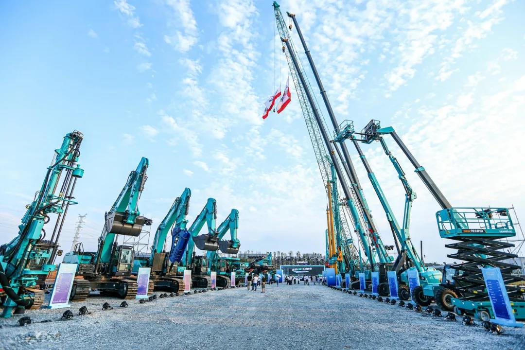 在山河工业城三期项目主干道两边,四大成套装备系列展机一字排开,等待着观展者的“检阅”。