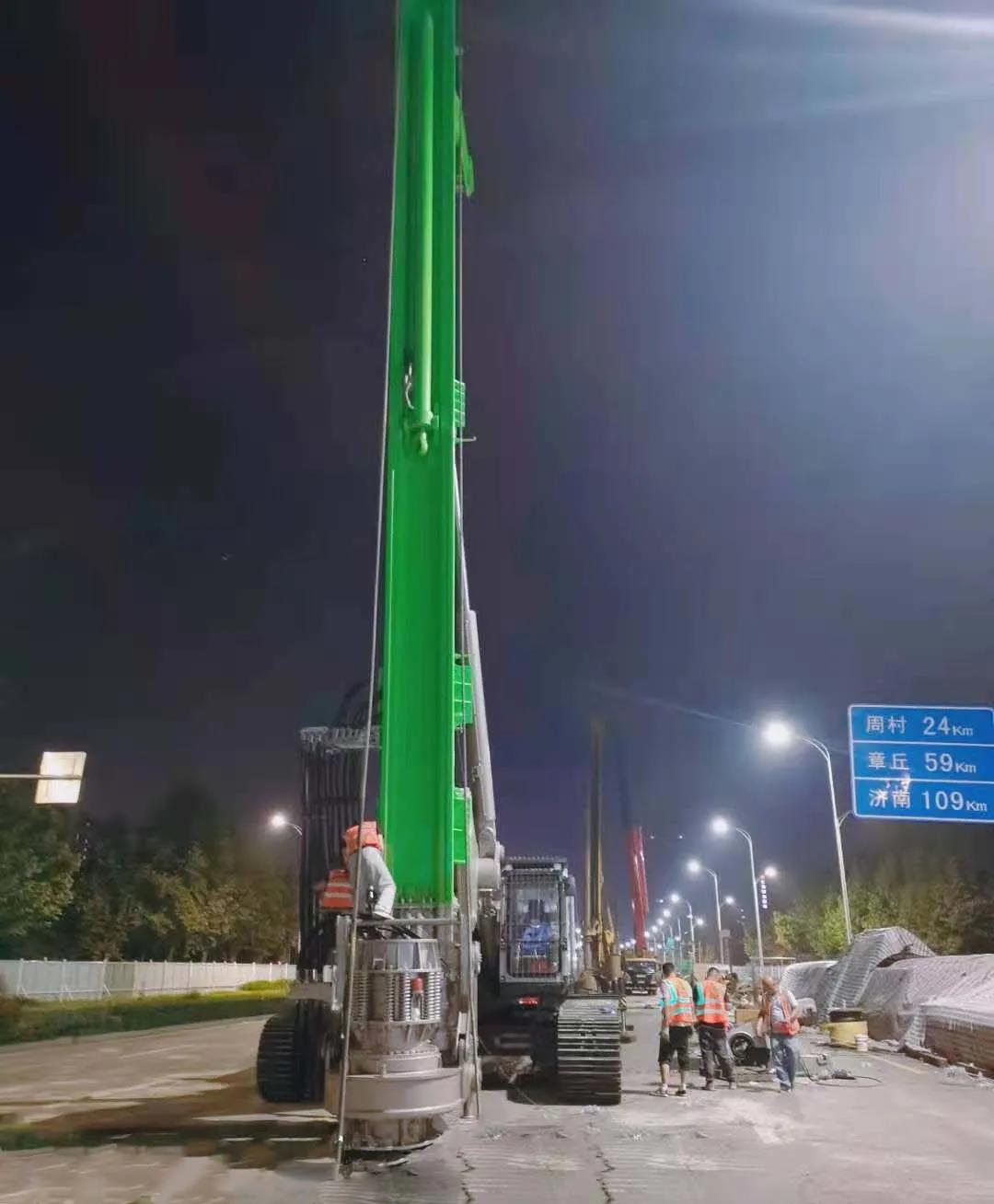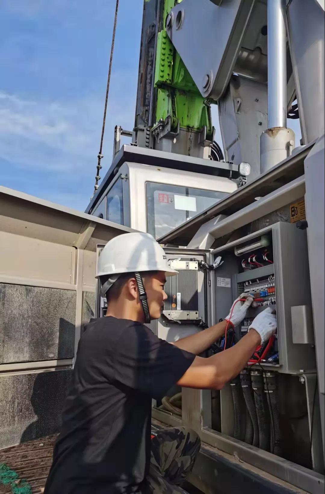 一天,一台ZR450L出现紧急情况,我们服务工程师彭武接到报修的第一时间联系客户,初步咨询现场及故障情况,了解到可能机手操作失误导致桅杆油缸损坏,立即从济南赶往泰安工地,同时发运配件。由于工地工期紧急,彭武到达工地一边安抚客户,一边回想拆装注意事项,紧急有序的组织维修和拆卸。各个部位的销轴拆卸,吊装的细节及安全问题都需要同时考虑。拆左边装桅杆油缸时,因销子卡顿,只能手工用锤砸,千斤顶顶着,安装加压油缸时,因工装客户还遗留在原来工地,临时想办法找了两根长方木,用绳子两端固定平衡,还好比较平稳的装上了。经过一天的努力,终于在凌晨修好设备。我们服务的宗旨就是让客户买的放心,用的舒心。