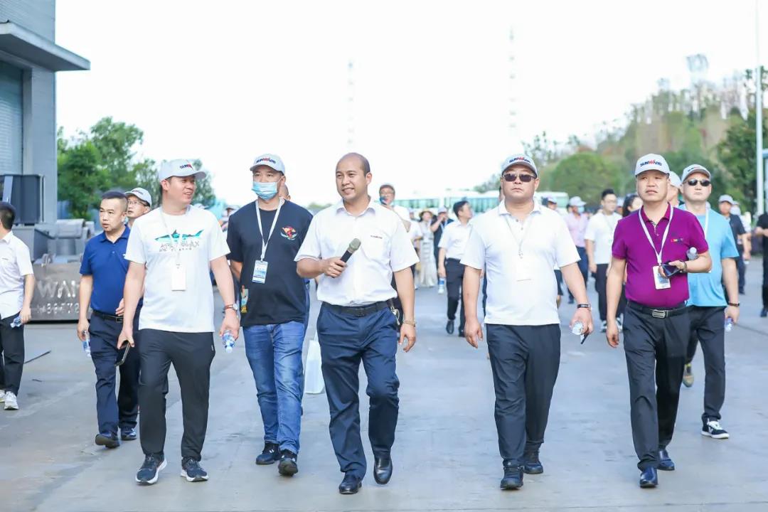 △在山河大道上,山河智能副总经理黄志雄、龙居才为到访客户讲解山河智能这一年来的成果,以及山河智能的发展历程。
