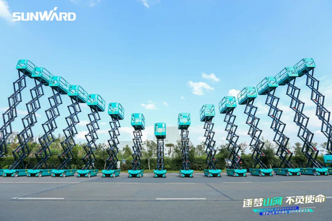 △别出心裁摆放的高空作业设备,另有一番新风味。