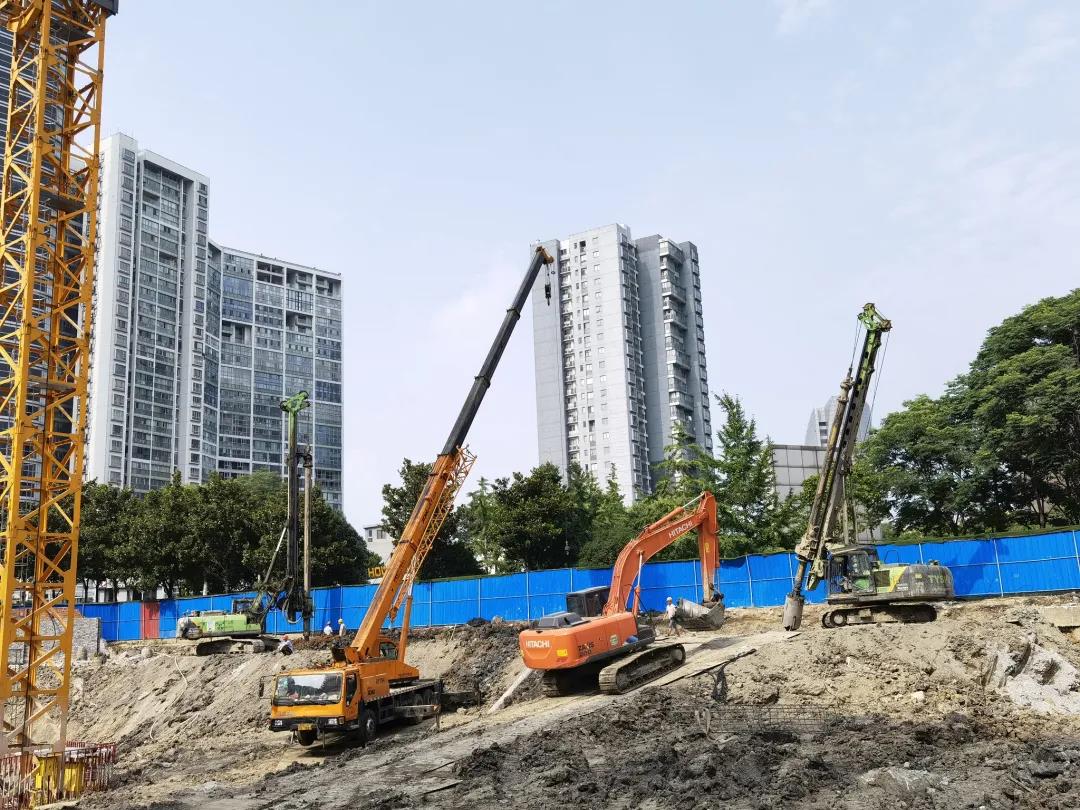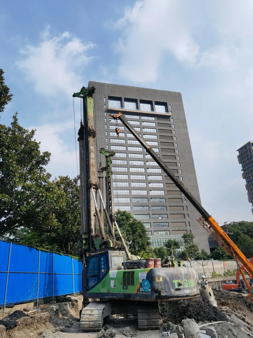 近日,江苏泰信KR90A小型旋挖钻机施工于江苏江阴市某商品房开发项目,该项目为旧房基础上进行改造。施工现场地表为40cm厚的水泥地面,地面下有原旧基础的三轴搅拌防渗墙12m深,接下去为沙土易塌孔层。施工要求不开挖清除地面水泥及防渗墙,新的桩孔要求打穿水泥地面和防渗墙,并且进入易塌孔地层,桩孔总深度18m,直径700mm。江苏泰信KR90A小旋挖钻机以其强劲的动力,顺利清除了水泥地面和防渗墙障碍,同时采用泥浆护壁的施工工艺,克服现场施工空间局限及狭小的困难,充分发挥小钻机大动力的优势,顺利并高效地完成施工任务,为客户降低施工成本,缩短施工工期,赢得了客户的一致好评。