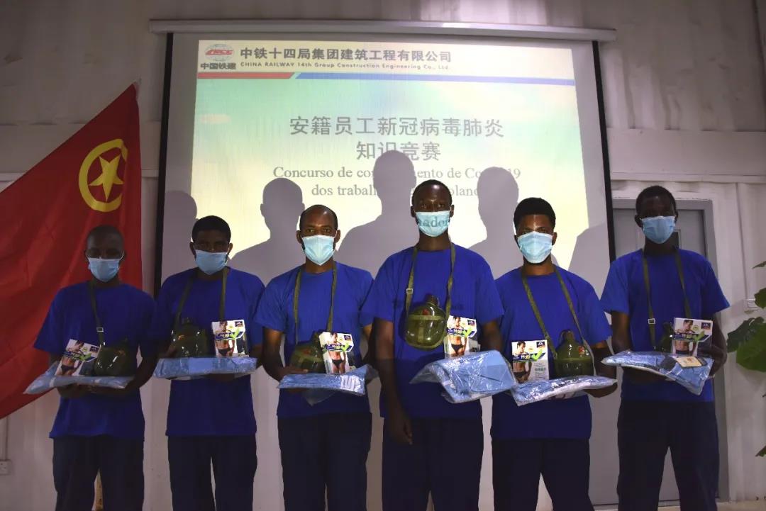 在疫情防控和复工复产的关键时期,项目青年员工主动请缨轮流值班,进行人员测温、驻地消杀等日常工作,同时编制葡语版防疫手册、制作视频宣传资料组织安籍员工学习,助力企业生产。
