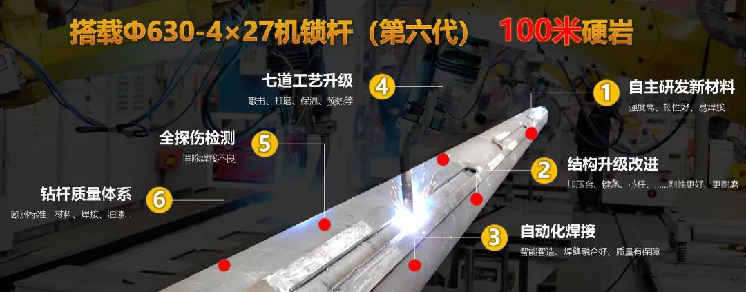 SR580整机高约38米,重达230t,稳如泰山。最大施工钻孔直径可达4m,搭载全新φ630-4×27第六代机锁杆,稳定传输大扭矩、大加压力,使百米入岩成为现实。
