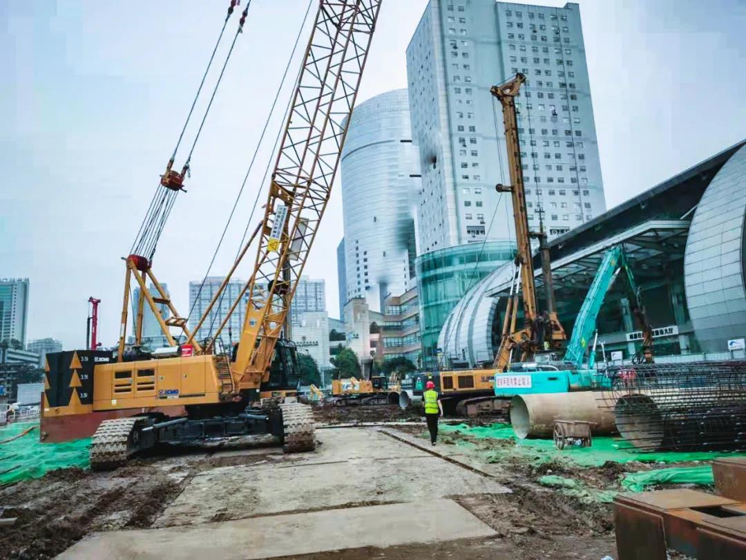 成都骡马市站属于成都核心商圈,施工时间受限,现场施工地层复杂,徐工旋挖钻机将完成直径1.6m、深65m的基坑开挖,工程有数百根深桩。