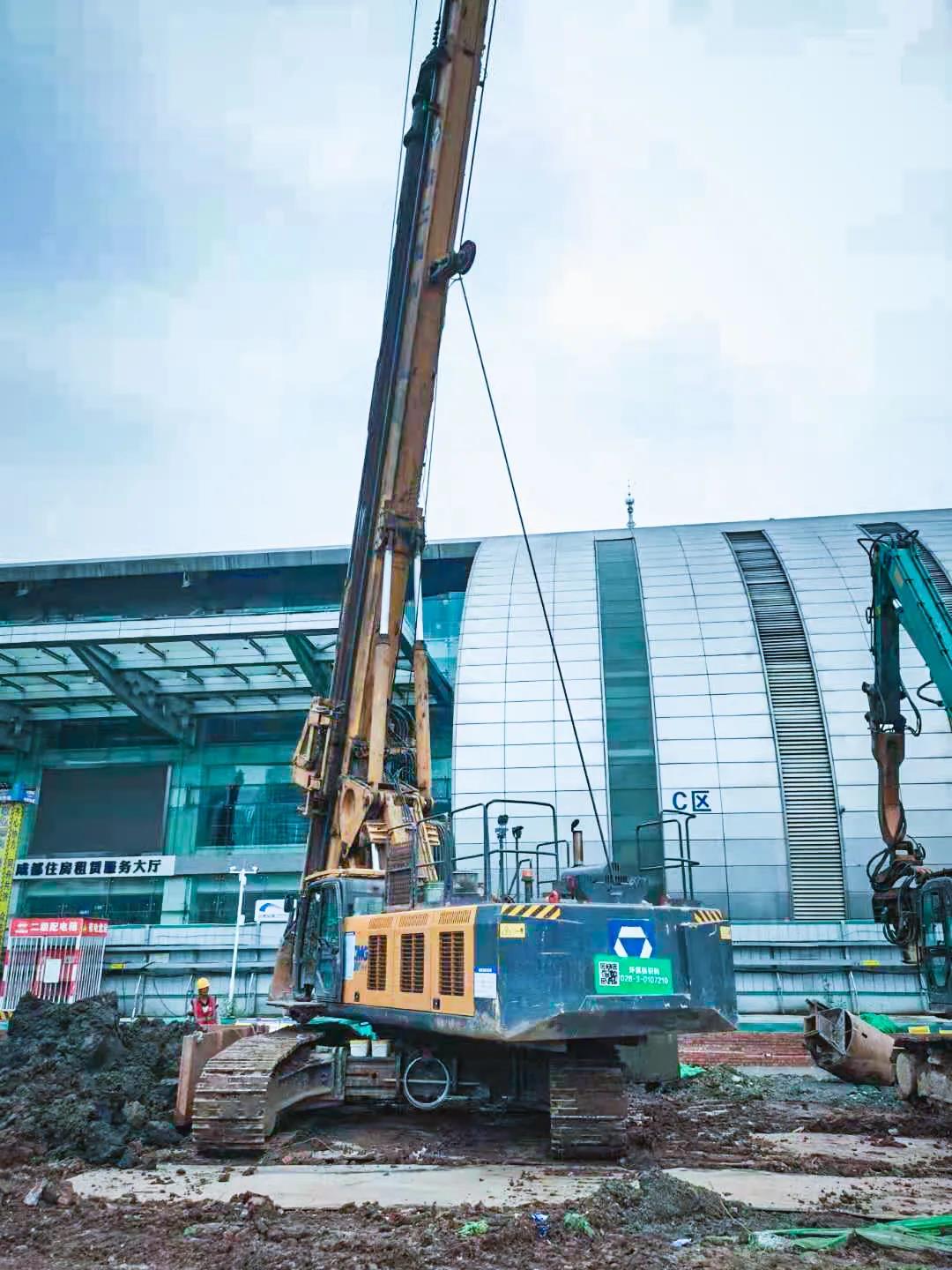 由于该基坑的深度较深,坑内施工区域场地狭小,机械设备操作空间有限,交叉作业比较多……徐工售后支持人员驻守工地进行贴心服务,与项目组一道不断优化施工工艺,创新钻进方法,确保成桩质量,以优质桩为成都地铁深基坑作业提供支撑。