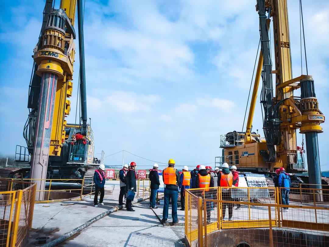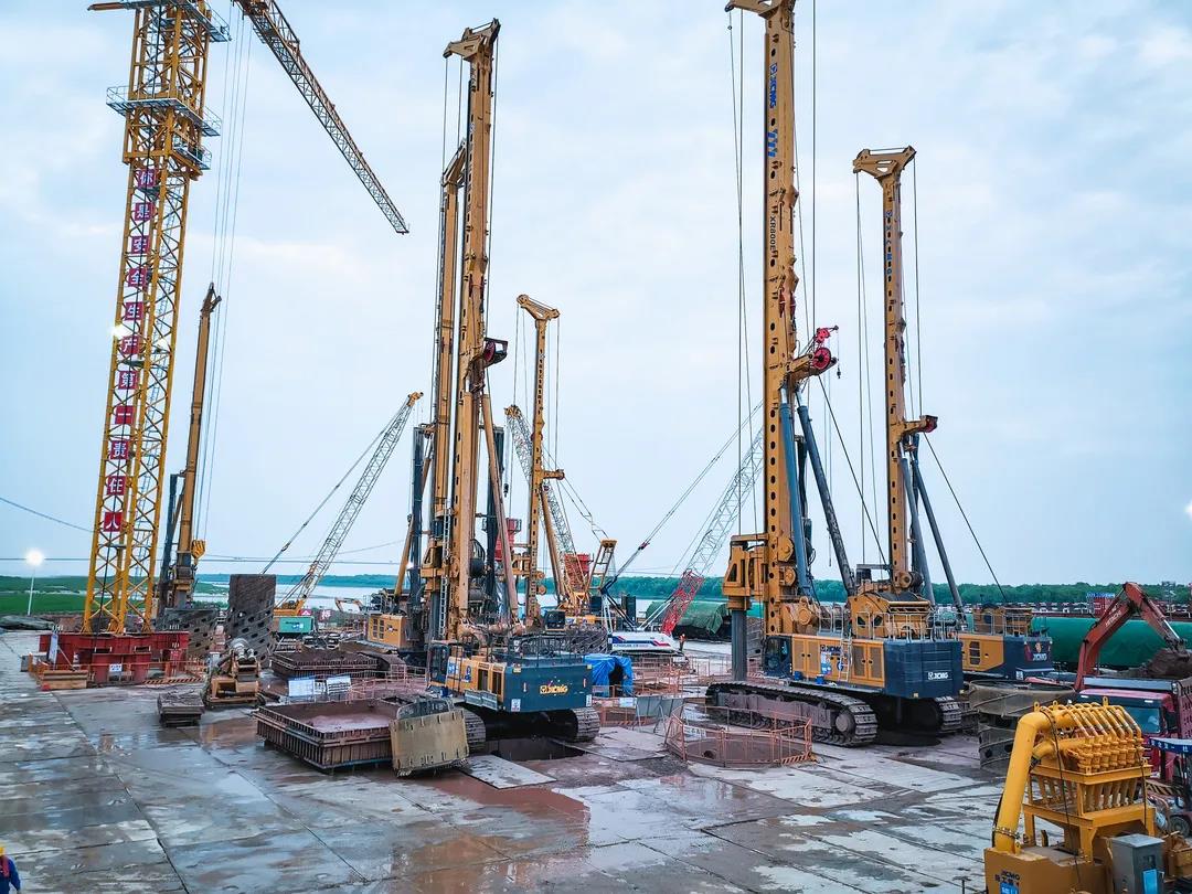 在主航道桩基施工完成的基础上,徐工旋挖钻机又投入到大桥主体热火朝天的建设中,用徐工品质、服务质量再度刷新施工速度,让这一“世界级”跨江工程早日“牵手两岸、造福地方”。