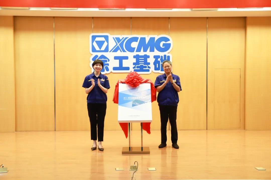 事业部党委书记、总经理孔庆华,党委副书记、纪委书记、工会主席刘佳佳共同为《徐工基础企业文化手册》揭幕