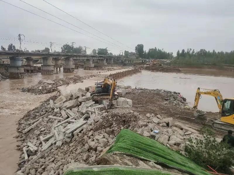 项目负责人表示,此次抢险工作共投入渣土车、挖掘机、装载机、推土机、吊车等各类大型机具80余台套。进场4天以来,项目抢险人员夜以继日、轮番作业,最终填筑片石近10000方,对洪水实现了有效封堵。
