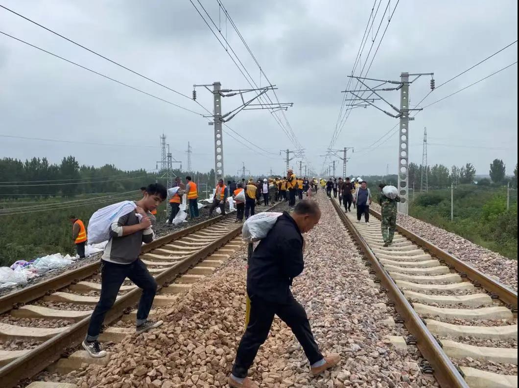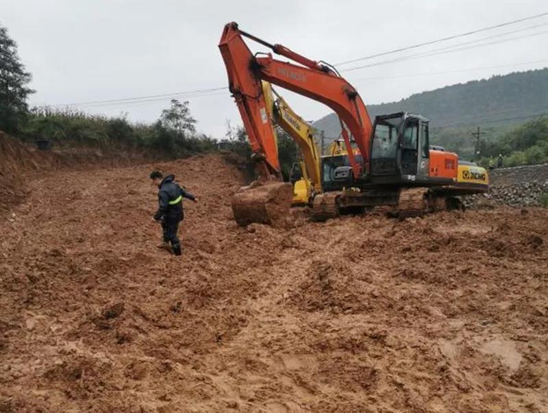中铁十四局晋城老旧小区项目部紧急抽调40名工人,大型机械9台,先期抵达抢险现场,立即投入铁路抢险。项目主管带队5名管理人员于27日晚抵达现场与中原指挥部抢险人员汇合,带领现场数百位工人和大型机械冒雨紧张作业。