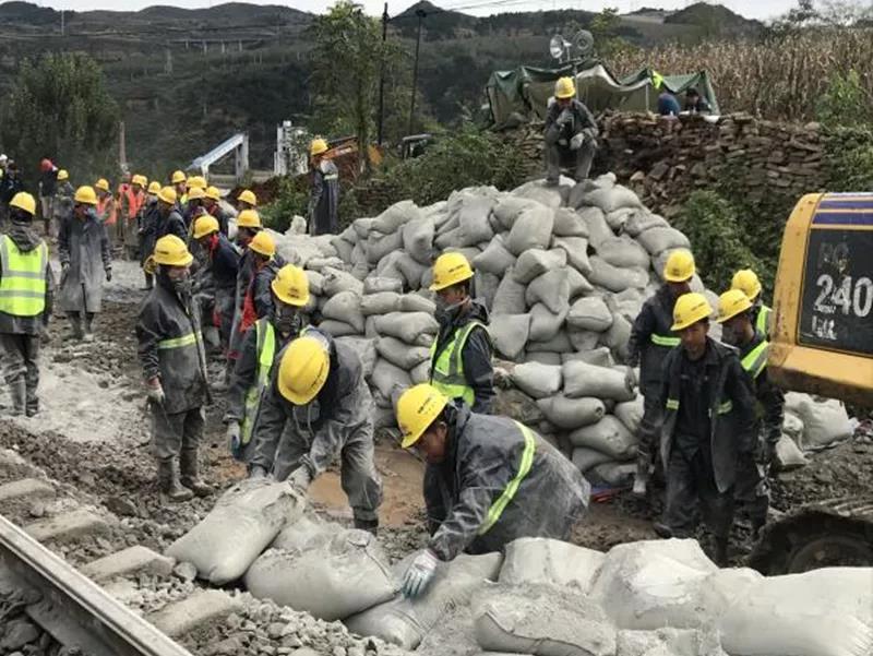 10月4日21时,抢险完毕完成机械退场后,在返回途中,又接到西康线抢险通知,10月5日凌晨1点,抢险人员到达现场,投入到又一场紧张的抢险施工中。