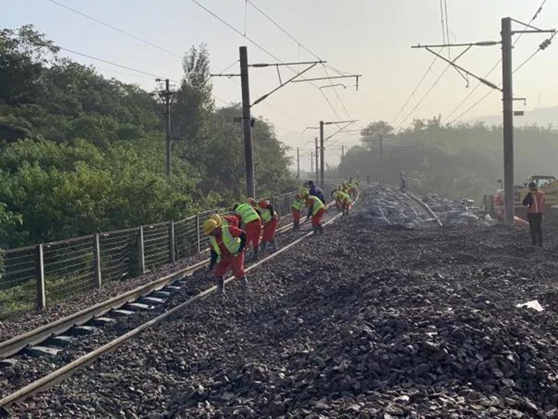 9月28日6时15分,宁西线渭南市临渭区川口王村附近铁路路基受损,造成货物列车脱线。中铁十四局集团西安站改项目负责人6时17分接到西安供电段电话后,迅速组织55名专业人员与13辆机具设备,于8时21分抵达70公里外的现场,全力投入到抢险救援工作当中。