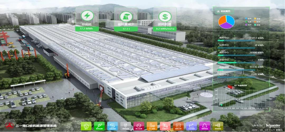 三一桩机灯塔工厂给出的答案是:通过工业互联网技术结合工业机理,建立最优能效模型及评价指标,实现能源精细化管理及节能应用。简而言之即先从源头上“踩稳油门”,再在细节中“精打细算”,从而实现总体脱碳。