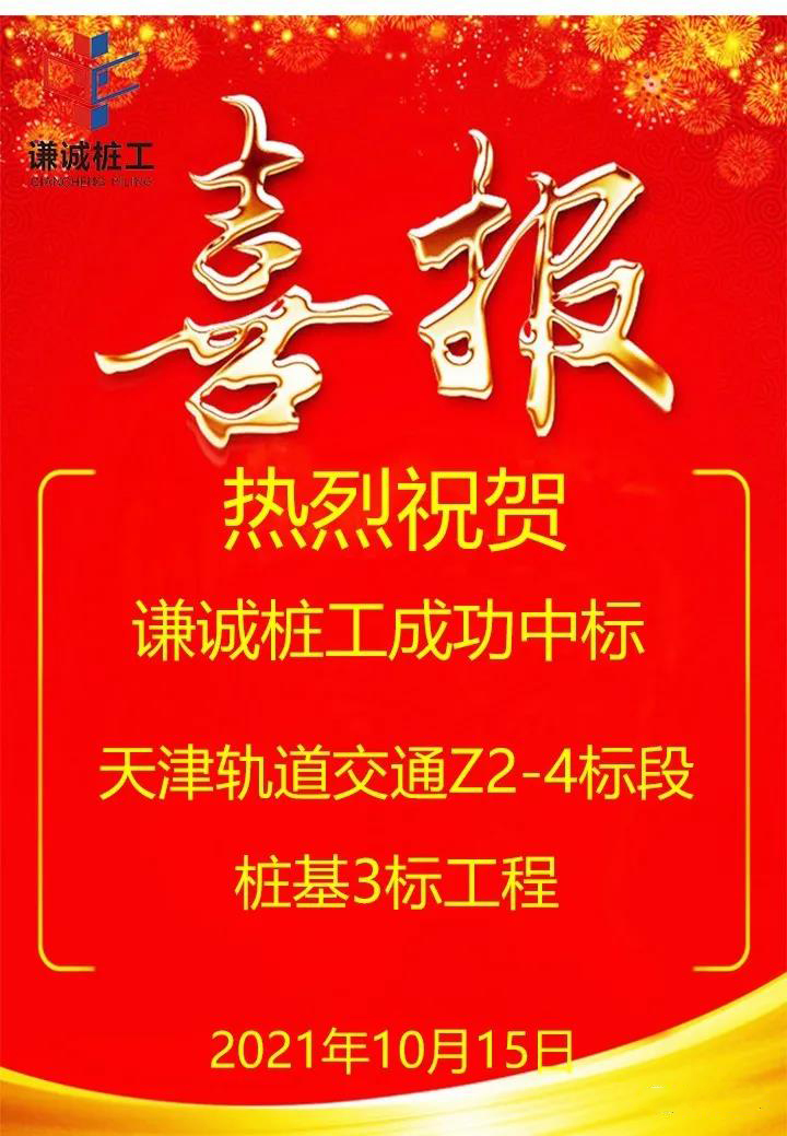 10月15日,继北京地铁28号线02合同段京广桥站后,谦诚桩工北京工程指挥部再次传来喜讯:公司就天津地铁Z2号线专业分包事宜与中铁二局草签合同,将承建该地铁线路Z2-4标段桩基3标工程,合同额4243万余元。