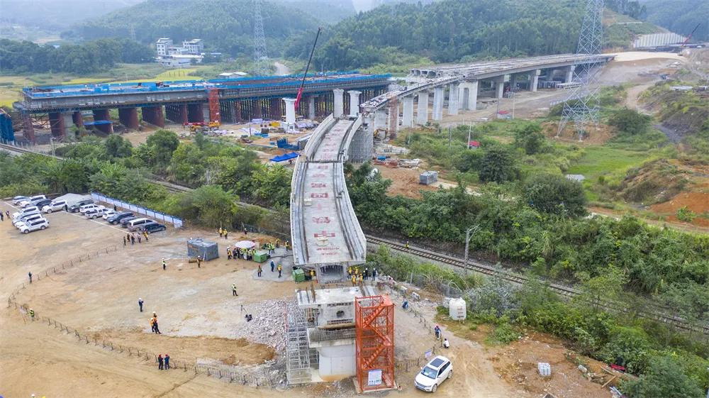截止目前,贵南高铁广西段桥梁工程整体进度已达到86%,进度保持适度超前,贵南高铁河池动货基地联络线1号大桥的成功转体,标志着全线控制性桥梁工程技术难题已全部解决,为加快工程进度打下了坚实的基础。