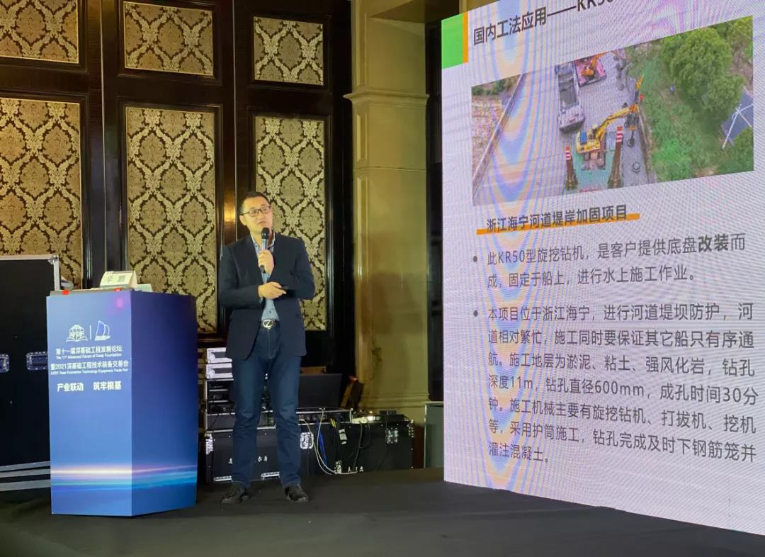深基础工程发展论坛是由中国建筑业协会深基础与地下空间工程分会、中国工程机械学会桩工机械分会、中国工程机械学会桩工分会及中国土木工程学会土力学及岩土工程分会联合主办。该论坛经过十年的持续交流,形成了聚焦发展形势、紧扣行业需求、整合资源合作、促进技术交流的鲜明特色。本届论坛围绕“产业联动 筑牢根基”为主题,同时邀请深基础工程领域的知名专家学者作行业发展报告、大会报告、平行论坛专题报告。作为特别协办单位之一,桩工陆英会会长单位江苏泰信以《小型旋挖钻机国内外工法应用分析》为主题作了专题报告,其中定制型小型钻机电塔基础施工、低净空系列钻机、模块式旋挖钻机及多功能旋挖钻机案例分享引起了与会者极大兴趣。