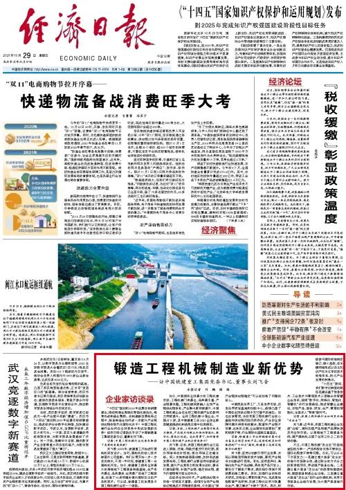 10月29日,《经济日报》头版刊登文章《锻造工程机械制造业新优势》,对铁建重工党委书记、董事长刘飞香进行专访报道,解读工程机械制造业如何在构建新发展格局中完成转型升级,在全球竞争中形成发展新优势。