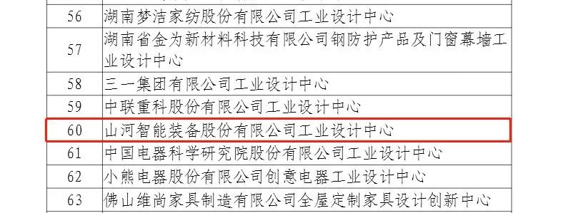 近日,工业和信息化部办公厅发布《关于组织开展第五批国家级工业设计中心认定和第三批复核工作的通知》(工信厅政法函〔2021〕71号),公示了第五批国家级工业设计中心名单,山河智能装备股份有限公司(以下简称“山河智能”)工业设计中心名列其中。这是山河智能继国家级企业技术中心、国家级国际科技合作基地等荣誉后,再次获批的国家级平台。