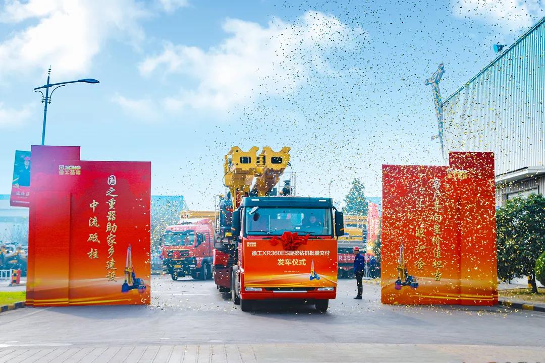 11月4日上午,在徐工基础工程机械智能制造生产基地,一场由客户、同盟军、员工共同见证的发车仪式盛大举行,十台徐工新品XR360ES旋挖钻机批量发往徐州客户,助力家乡建设。