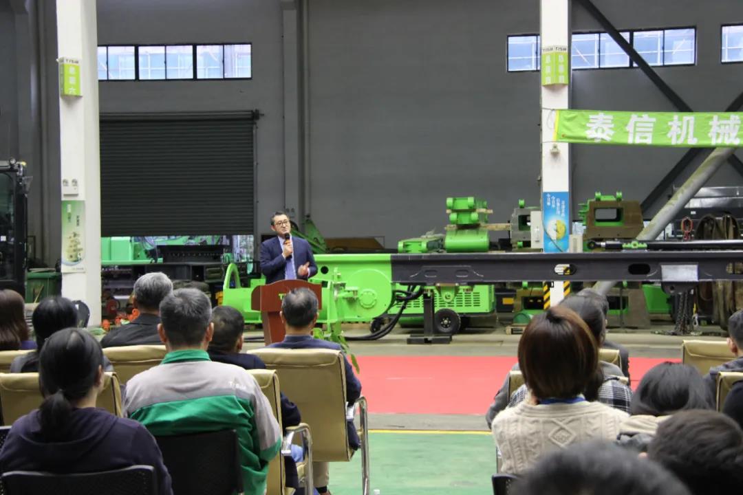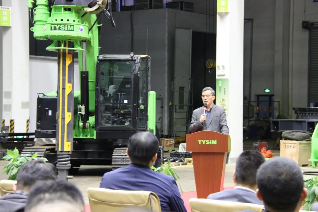 庆典上中国工程机械工业协会桩工机械分会黄志明秘书长上台发言,对泰信机械的发展历程和对行业的贡献作出了高度评价,也对泰信今后的发展寄予厚望,也给出了专业的意见,送上了美好的祝福。