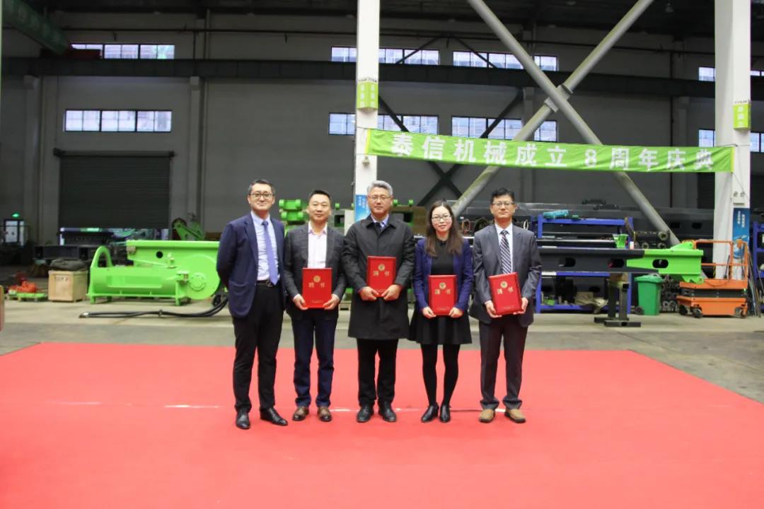 在这秋风送爽的美好季节,江苏泰信机械科技有限公司迎来了八周岁的生日。11月6日下午,主题为“凝心聚力 砥砺前行 专注 创造 价值”的庆典活动在泰信机械无锡生产车间隆重举行,泰信员工和嘉宾欢聚一堂,常州泰信生产工厂、新加坡办事处和乌兹别克斯坦合资公司通过视频直播连线的方式一起参加到庆典活动中。当天应邀前来参加活动的还有行业协会领导、金融银行领导、供应商代表及桩工陆英会成员单位,大家共同分享泰信八年来的成果与喜悦。
