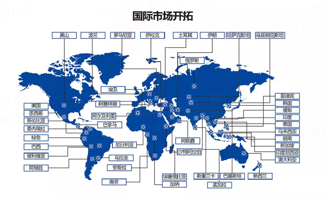 目前,徐工的产品已经遍布全球187个国家和地区,徐工基础工程机械板块也已出口到80多个国家和地区,并且正快马扬鞭开辟着新的市场。