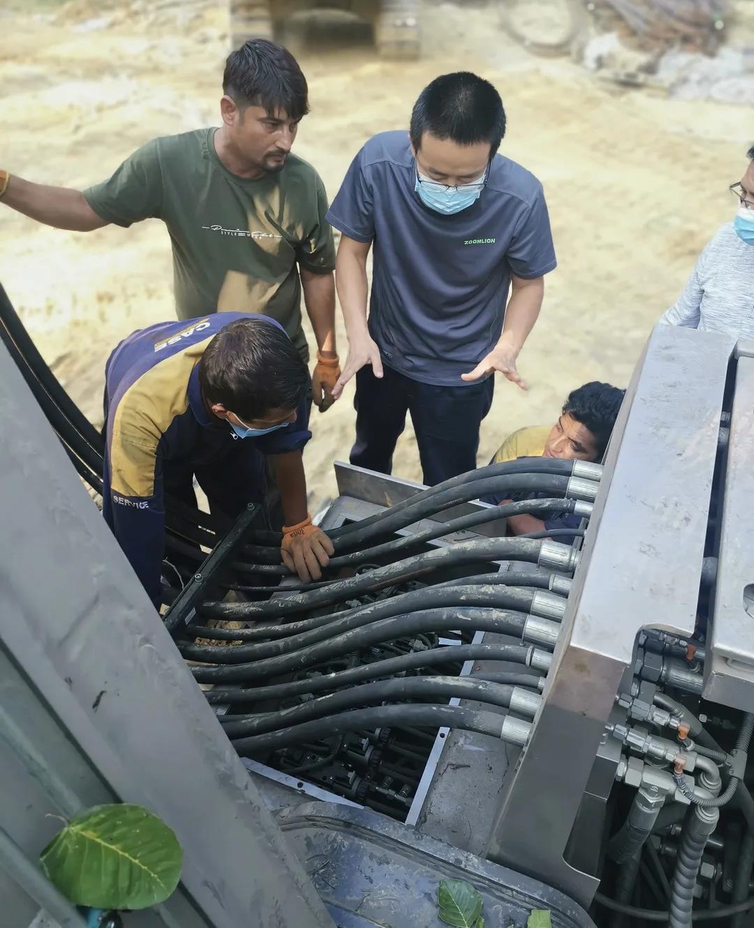 设备到达工地后,中联海外工程师对客户进行了产品组装与操作培训。从接到新机对机器外观进行检查,到确认运输过程中是否有损伤和零件缺失,事无巨细。随后对组装新机的工程师交待安全注意事项并一起组装,确保每一个环节都安全、有序的完成。遇到问题,现场耐心讲解,逐步引导,快速帮客户解决问题,最后顺利完成装车,期待中联旋挖钻在国际舞台上的精彩表现。