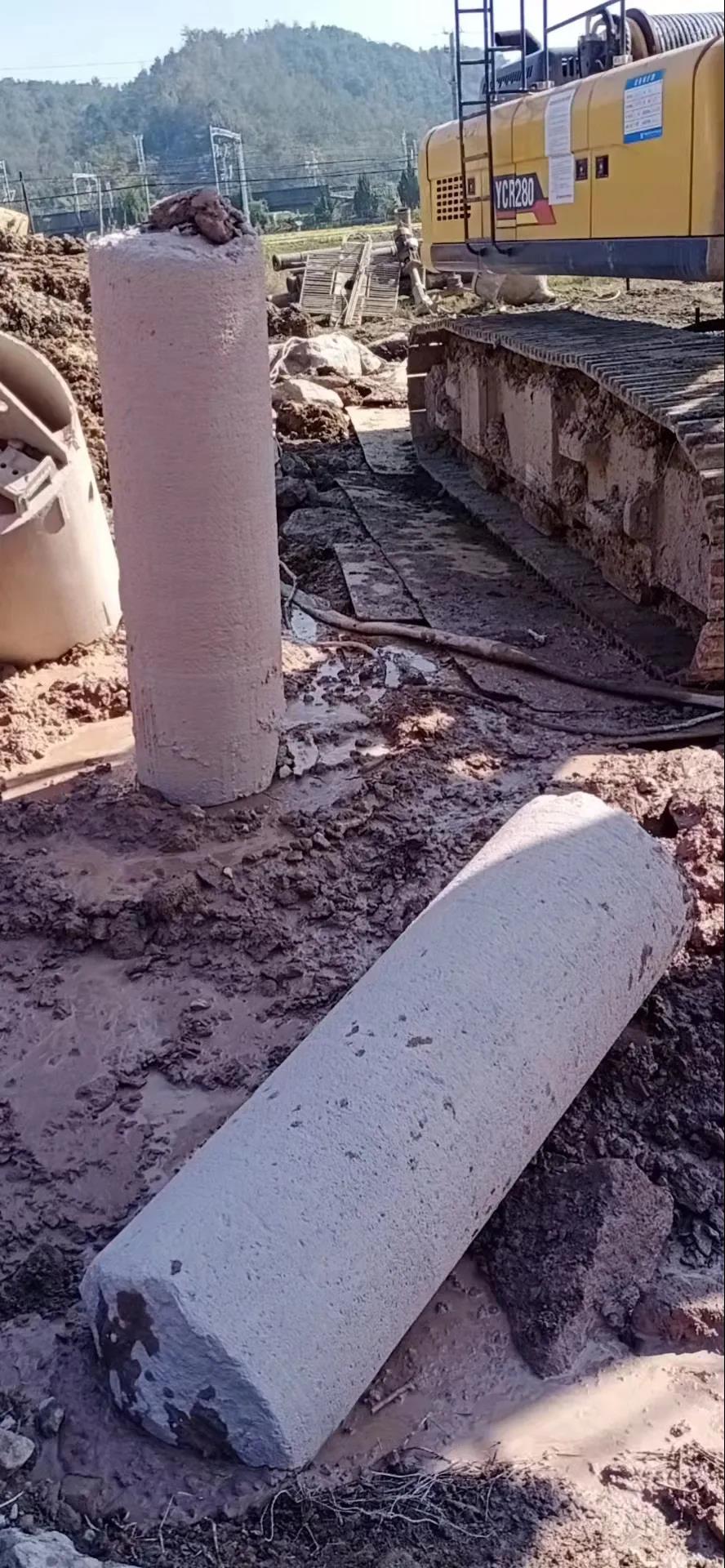 该玉柴YCR280D旋挖钻机于今年8月交付客户,此次参建的工程是临温高速公路施工项目,地层开孔就是花岗岩,施工孔径为1.2米,成孔深度11米,入岩11米。玉柴YCR280D旋挖钻机面对如此艰巨的挑战,展现了成熟稳定的良好施工性能,以低速入岩模式,成功钻取了直径700mm、高度1.8m的岩心。