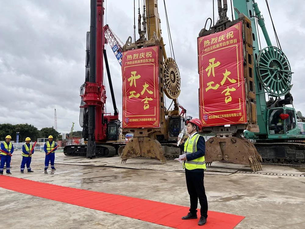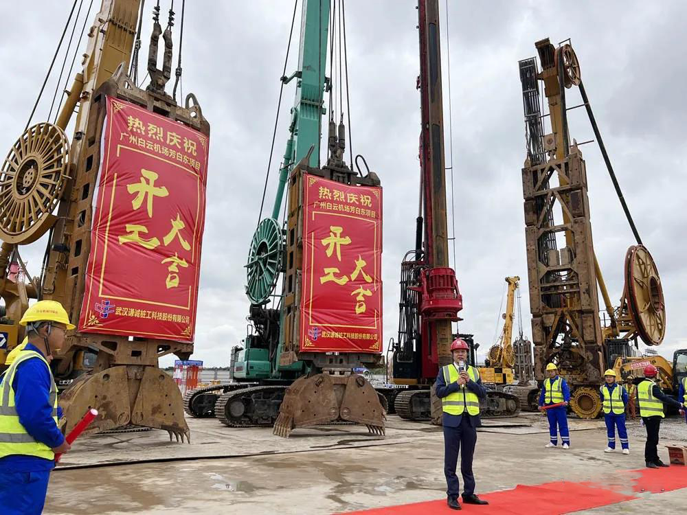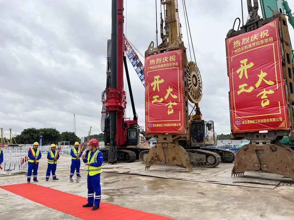 11月22日上午,在礼花绽放和机器轰鸣声中, 谦诚公司承建广州白云机场T3轨道交通预留工程芳白东地下连续墙工程宣告正式开工,现场举行隆重开工仪式。