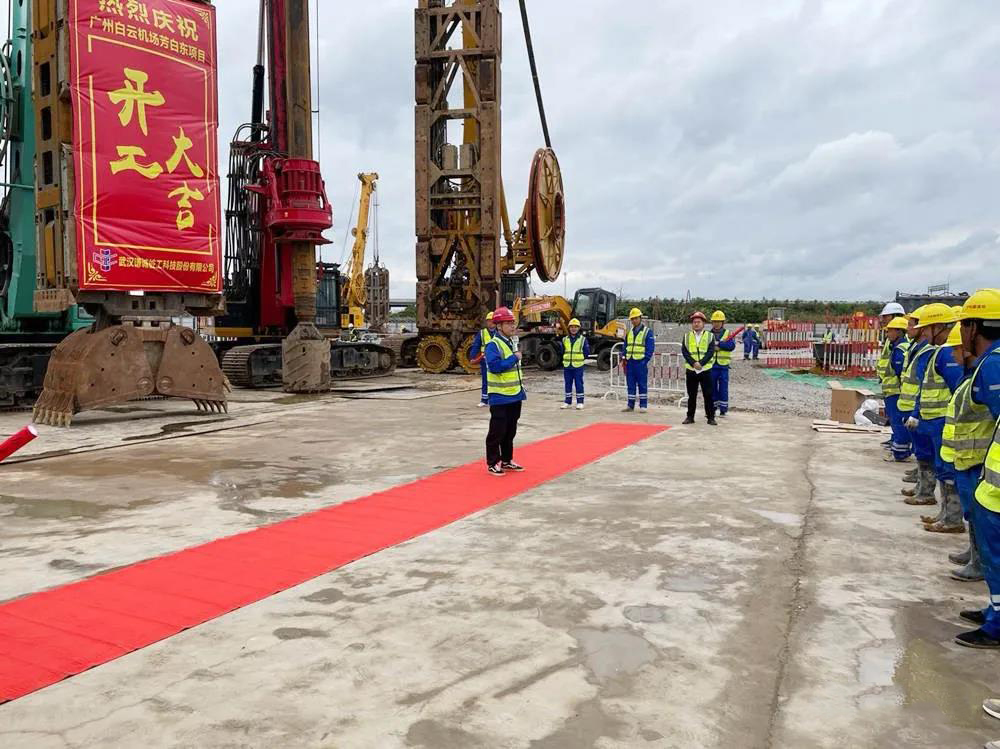 项目总包方中铁隧道局项目经理杨琼鹏、书记李海平、生产经理齐彬等领导莅临指导,谦诚桩工董事长兼总经理郭克诚、执行总经理兼地下空间公司执行董事林建平、南沙工程指挥部指挥长黄继勇、华中工程指挥部副指挥长兼地下空间公司副总经理李汉旭、总经办副主任陈娟等出席开工仪式。仪式由黄继勇指挥长主持。