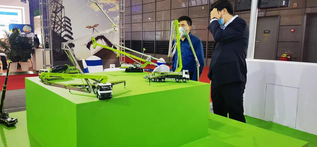 中联重科的工程机械与农业机械板块应邀参展,多种产品的实机与模型在大会上展示。在高端装备制造8号展馆,近10款精美的工程机械产品模型让人眼前一亮,涵盖旋挖钻机、泵车、挖掘机、汽车吊等多款王牌产品,其前沿的外观设计、极光绿的主配色吸睛无数。