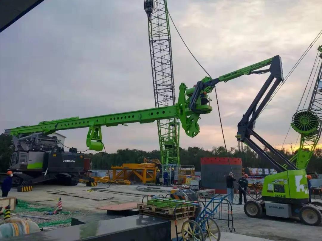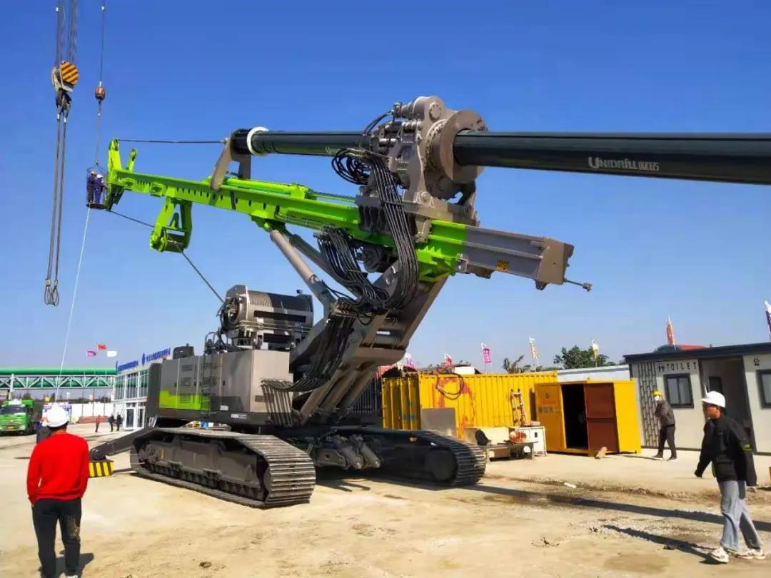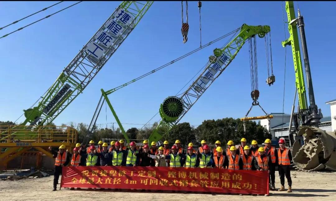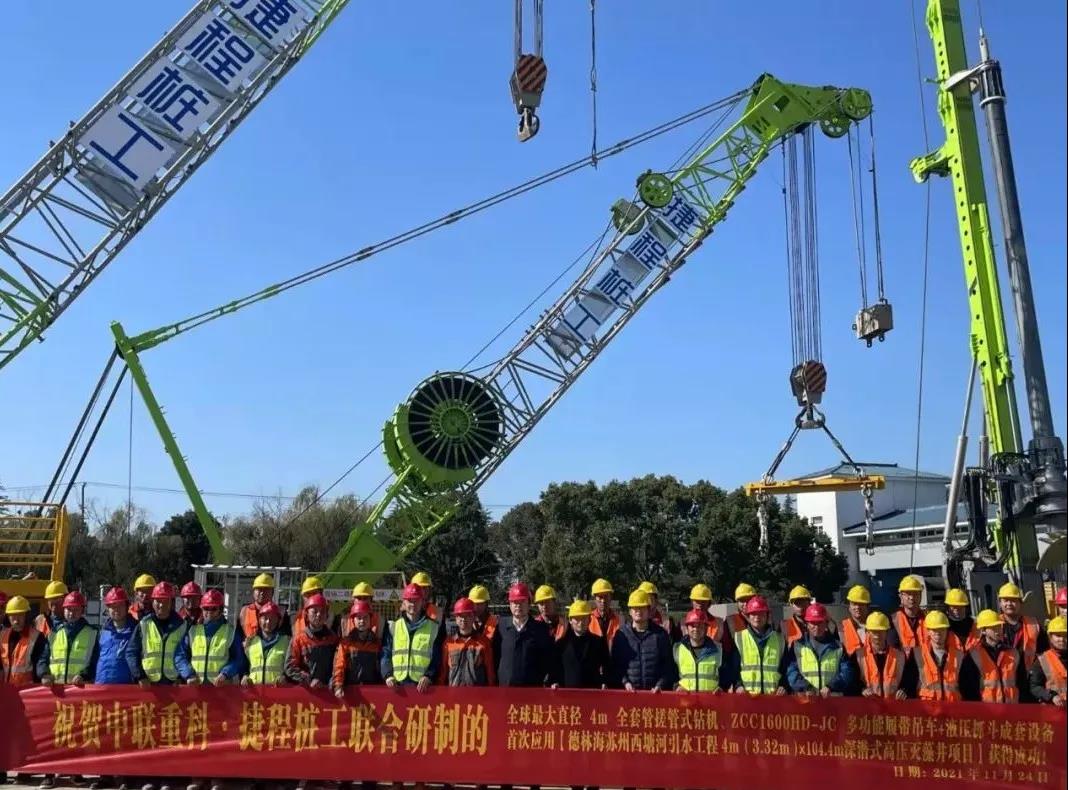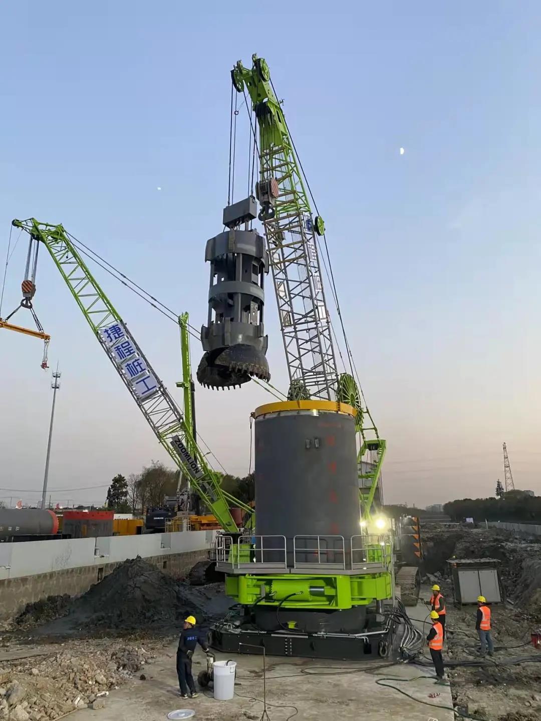 随着该项目的第一口井沉井到位,标志着中联重科和捷程桩工联合研制的全球最大直径4m搓管机、液压抓斗和多功能履带吊车成套设备以及新型ZR600H旋挖钻机的首次应用成功。