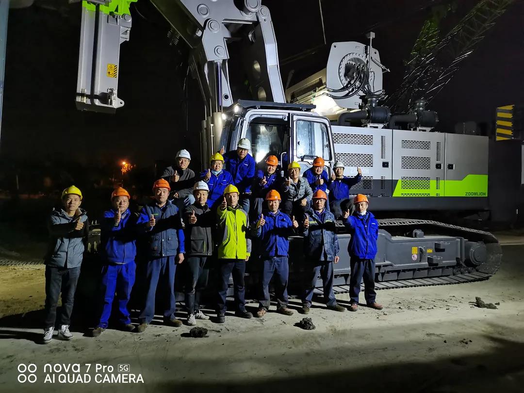 为了保证项目进度, 中联重科的工程师们连夜奋战,根据客户定制化要求,生产各类特制专用机具,在约定期限内完成了超大型旋挖组装,联调联试,确保项目顺利实施。