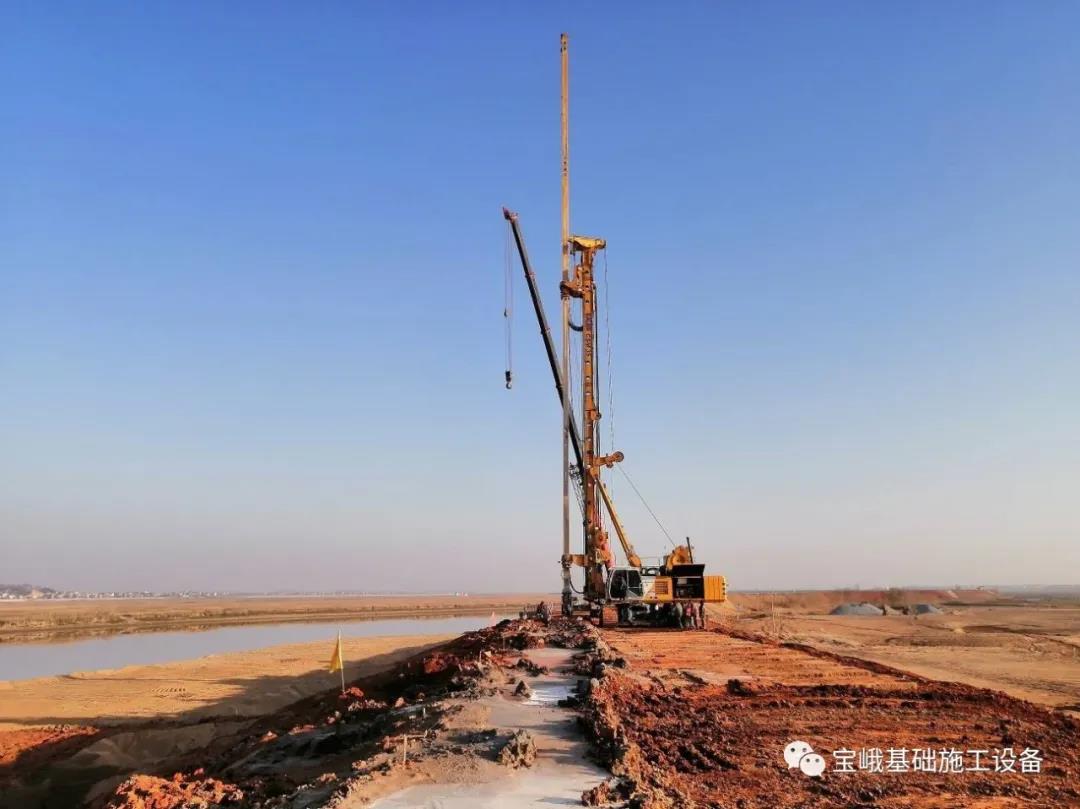 首个项目为信江八字嘴杭电枢纽工程左岸库区防护工程BW3标项目,由江西路港工程有限公司总承包。其中CSM防渗墙总长度约7公里。下图为位于信江南岸施工的宝峨CSM 35双轮铣深搅设备。