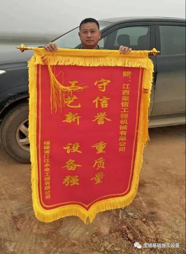 尽管存在大厚度密实砂层及砂砾石层,且需要嵌岩至少1米,宝峨CSM 35双轮铣深搅设备仍表现优异,一般4.0~4.8小时即能完成一幅槽,包括液化土壤、搅拌均匀、注浆各个环节,且墙体可以满足1/400垂直精度要求。由于良好的现场管理,设备安全、平稳、无故障运营,较高的施工质量及较好工期保障,江西秉信机械设备有限公司也收获了来自总包方的一面锦旗,以表达对他们出色工作的认可。