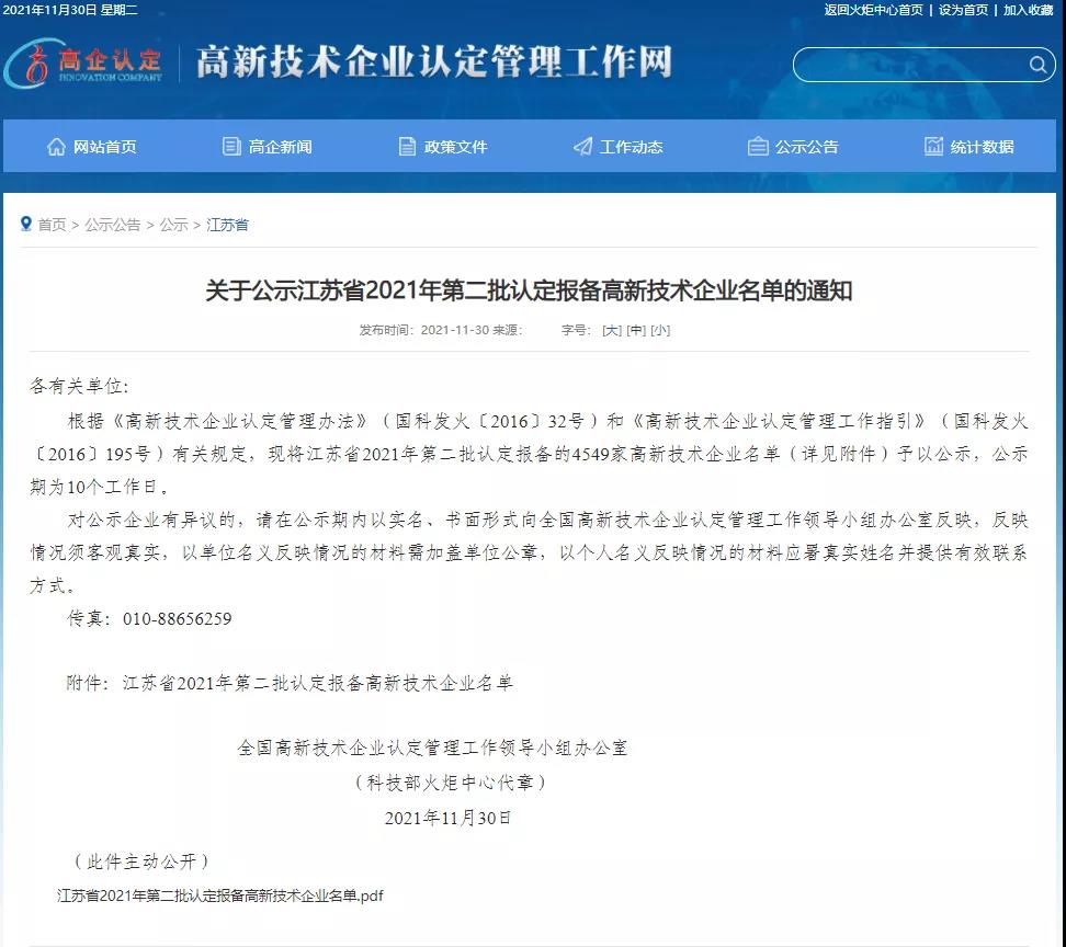 11月以来,申报状态持续更新。30日,2021年第二批高企通过名单公示:通过。