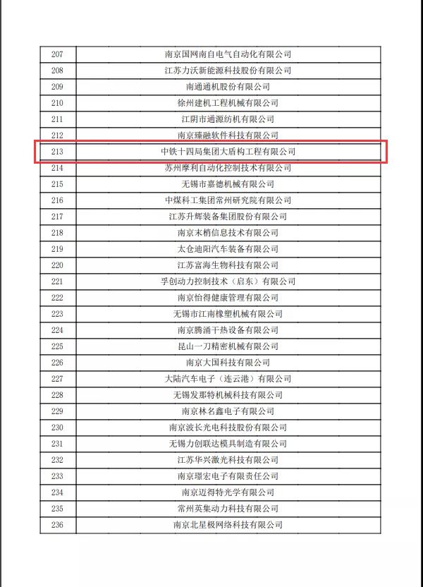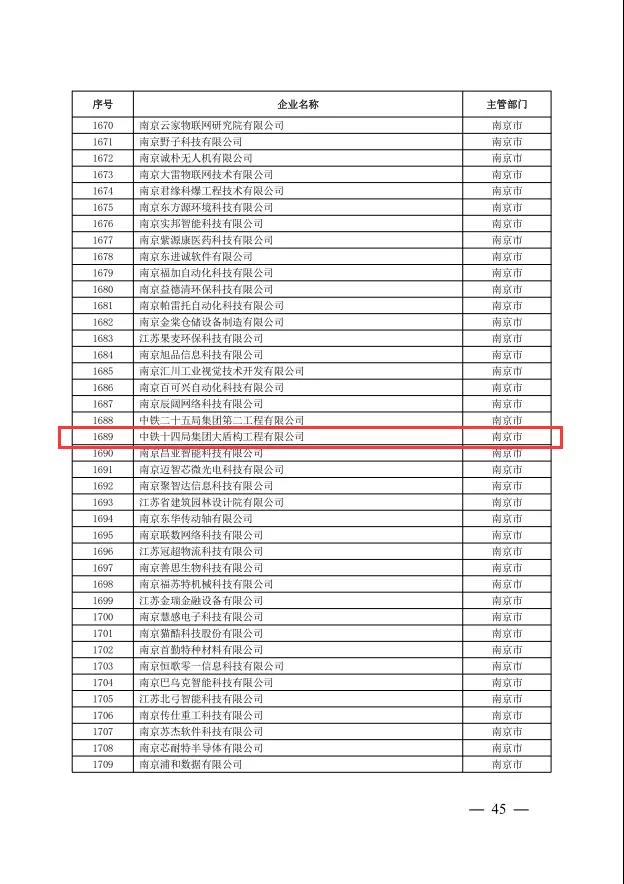 11月30日,由全国高新技术企业认定管理工作领导小组办公室正式对外发布《关于公示江苏省2021年第二批认定报备高新技术企业名单的通知》,“中铁十四局集团大盾构工程有限公司”认定“国家高新技术企业”正式获批通过。