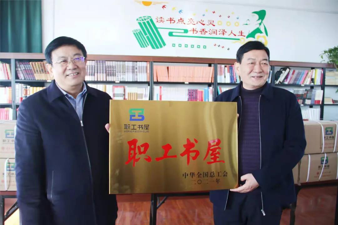 2021年12月3日上午,禹州市人大常委会副主任、总工会主席仝树朴、副主席余晓等莅临大张公司,为职工书屋授牌并赠送有涉及政治、经济、文学、历史等各类书籍共计12箱。大张公司董事长张振利参加了授牌活动。
