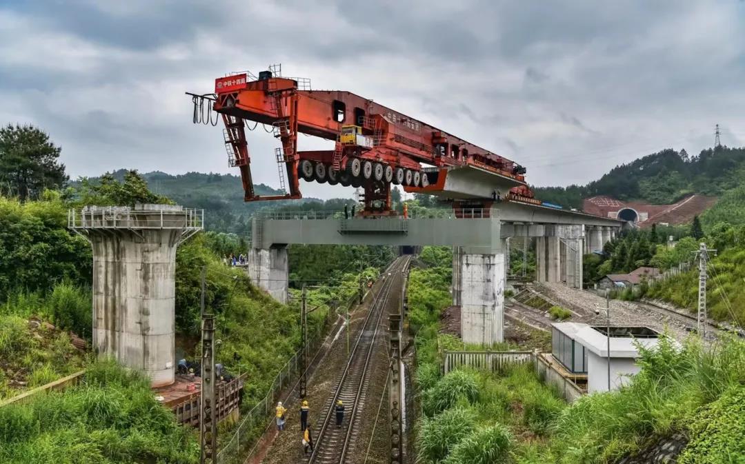 麻阳制梁场承担6座特大桥、21座大桥、15座中桥共计336榀箱梁的预制、架设任务。施工中交叉作业频繁、架梁通道阻碍多、高墩施工多、桥隧相连多、跨营业线施工风险高,最远运距达32公里。为攻克难题,通过引进第二台900吨运架一体机、增设换装点24小时双班不间断架梁施工方法,让远距离运架梁时间由每榀22小时缩短到每榀9小时,大大提高了架梁效率,顺利完成了上跨渝怀铁路营业线二级封锁施工,最终提前15天完成了全部架梁施工任务。