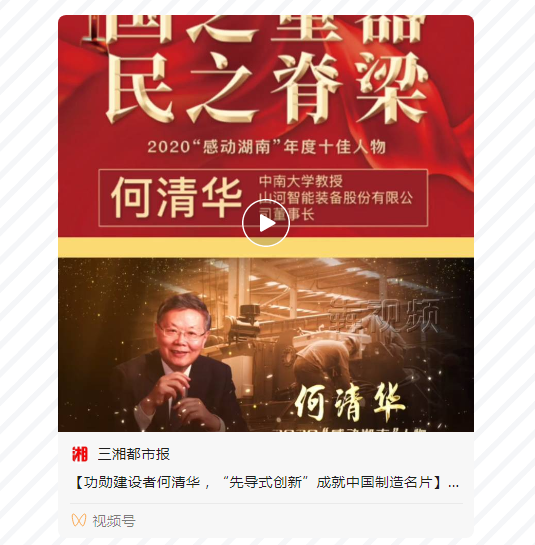 12月8日下午,2020年度“感动湖南人物”颁奖典礼暨2021年度“感动湖南人物”评选启动仪式在长沙举行。山河智能董事长、首席专家何清华获评2020年度“感动湖南”十佳人物。