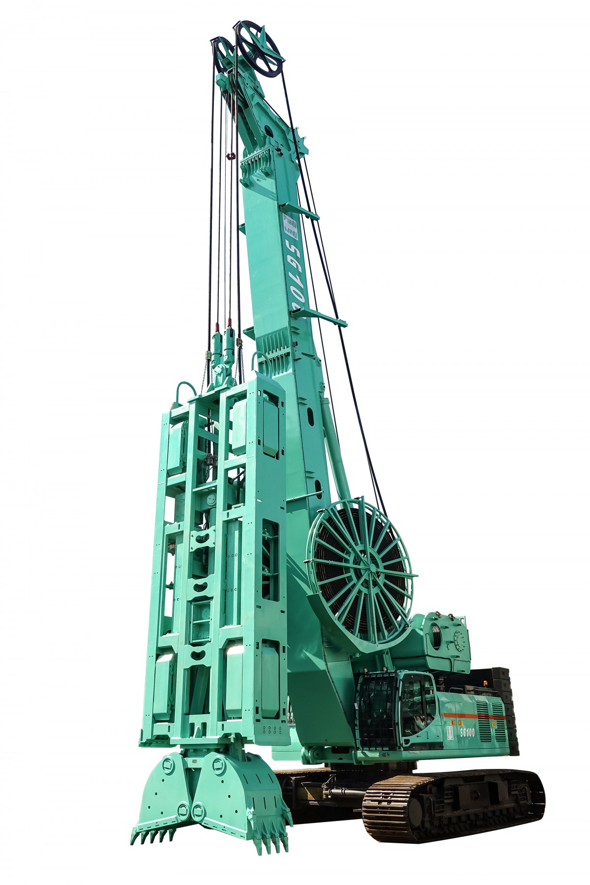 SG100液压连续墙抓斗是世界最大的液压抓斗,它采用美国原装进口康明斯QSX15型发动机,功率380KW,动力强劲,提升和下放快,施工效率高,拥有超强的成槽能力和较高的挖掘效率,最大槽宽可达2.5米,单层钢丝绳槽深可达120米,可实现抓斗功能与双轮铣功能互切。同时,SG100的关键零部件采用国际一流品牌,融合现代液压桩工机械新技术,保证系统运行可靠、稳定;单层钢丝绳可施工深度达到120米,采用先进的可编程的测斜装置,记录并存储抓斗的挖掘作业过程,施工深槽时垂直度有保证。