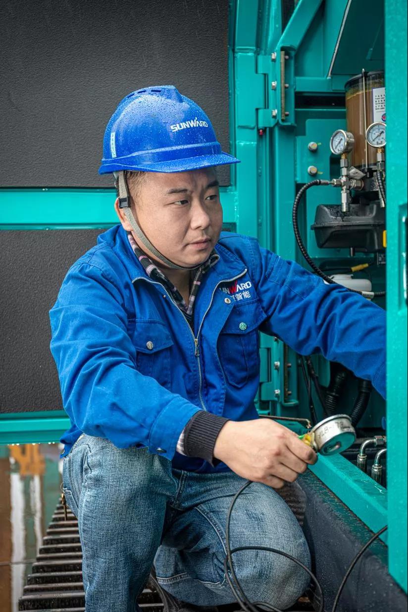 一毕业就进入山河智能的李桂文,已经在山河智能工作了16年。他脚踏实地、兢兢业业,从最初的地下工程装备钳工、调试工作再到售后服务工程师,每一个角色他都得心应手。他是售后服务团队的“急先锋”,山河智能第一台发往韩国桩架,第一台发往新加坡三马达快抛动力头旋挖,第一台发往越南全回转钻机,第一台发往印度尼西亚深搅钻机……都有他忙碌的身影。