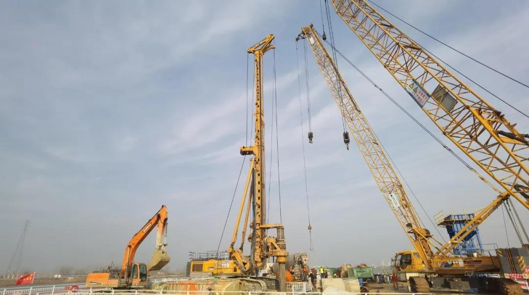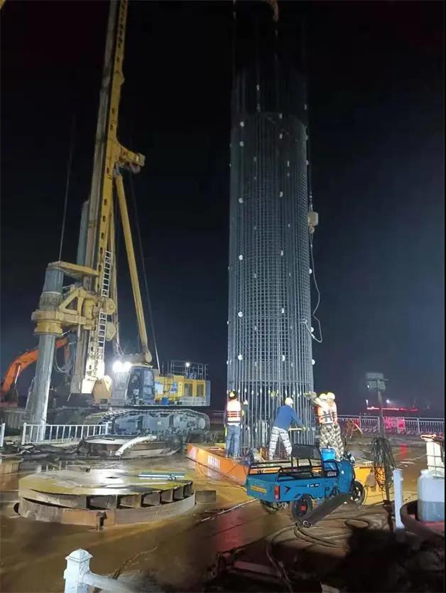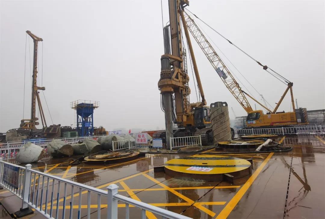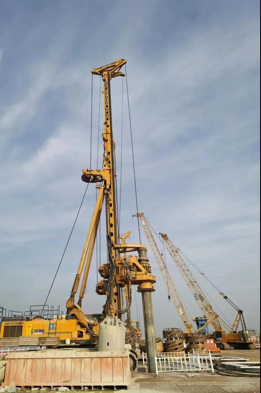 本项目桩基均以旋挖成孔工艺施工,配合各式钻头采用逐级扩孔方案钻进成孔。投入四台徐工XR580HD型旋挖钻机,XGC85T吊车、XGC130T吊车各二台,预计3#、4#主墩桩基工期3个月。